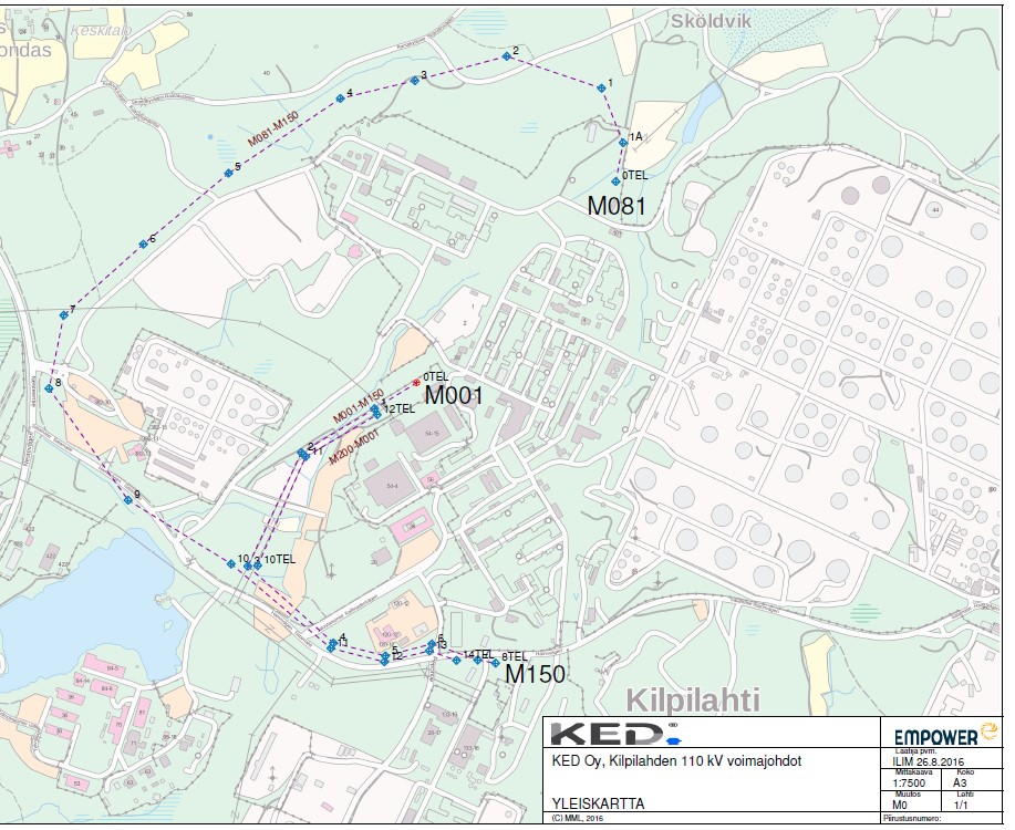 KED Ab (Kilpilahti Electricity Distribution) förnyar 110kV luftledningsnätet på Sköldvik området. Detta kommer att ske gradvist mellan år 2016 och 2019. EPCM entreprenör för projektet är Neste Jacobs Oy.